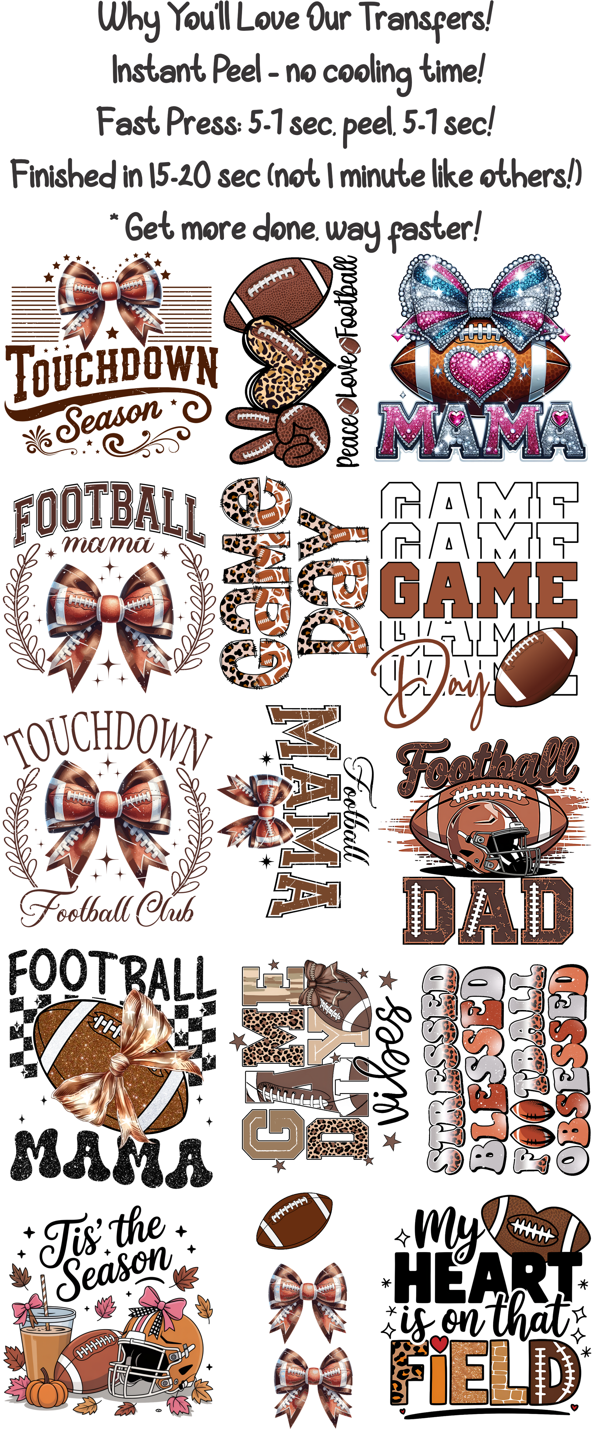 Football 1 30"x60" Gang Sheet – Instant Peel, Fast Press! (Football 1)