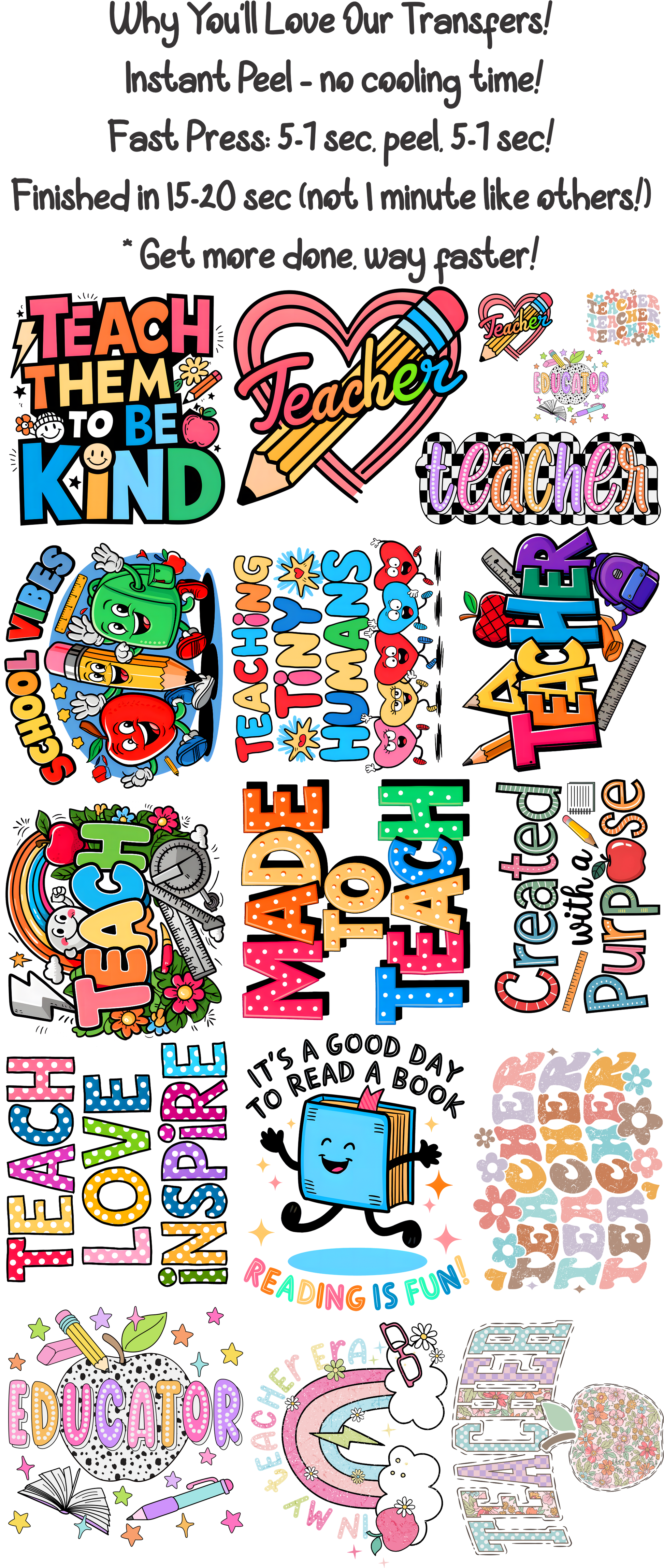 Teacher 1 - 30"x60" Gang Sheet – Instant Peel, Fast Press! (Teacher 1)